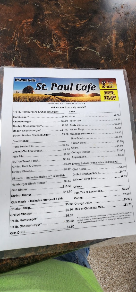 Welcome to St Paul Cafe, a delightful haven nestled in the heart of St Paul, Kansas, offering a menu that celebrates comfort food in a charming country kitchen setting. Dine in at the inviting location on 717 Washington St or call +1 620-449-2222 for takeout.